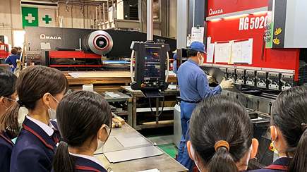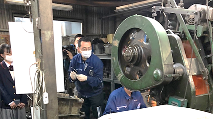 講演後は、それぞれのグループごとに5つの企業を見学しました。真剣にモノづくりに打ち込む職人の姿を見学させていただき、その製品作りへの情熱に生徒たちは感銘を受けていたようです。