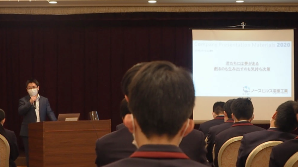 はじめに、大阪モノづくり観光推進協会理事 足立克己様 より、東大阪のモノづくりの原点や、その心意気に関してお話をしていただきました。その後、ノースヒルズ溶接工業株式会社代表取締役 北坂規朗様 より、自身の生い立ちや事業開始のきっかけなどをご講演いただきました。
