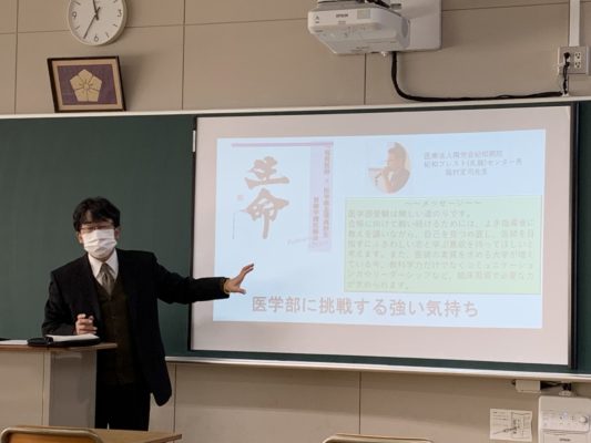 二学期末考査を終えた中学3年生の内、医学部への進学を希望する生徒が中学生版S.M.C.に参加しました。中学校の辻校長先生が講師となり、