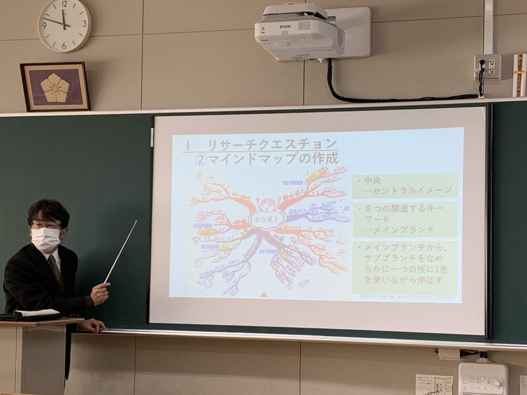 説明をしました。特に2)の項目では、マインドマップの作成を中心にすえて自らの課題や大学入学後の研究対象を明確にする方法の紹介がありました。