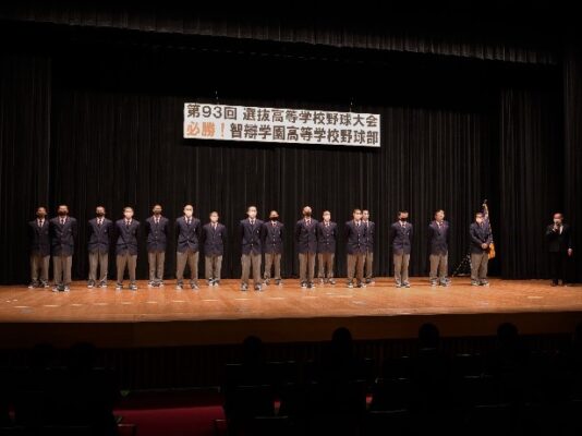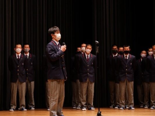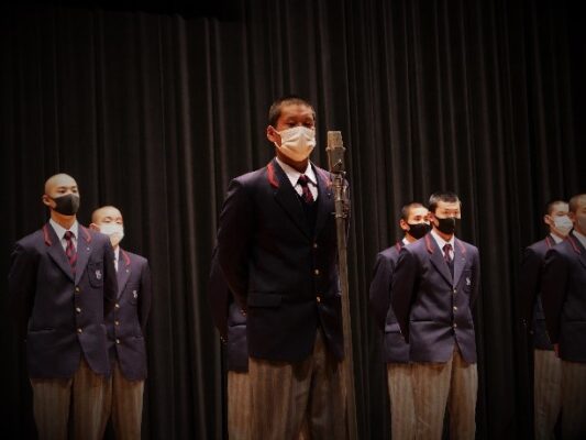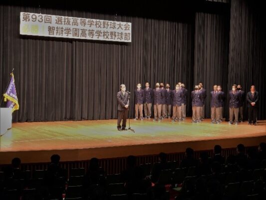3月10日(水)に、第93回選抜高等学校野球大会に出場する硬式野球部への壮行会が開かれました。理事長先生、育友会会長様、校長先生、生徒会長の激励の言葉に続いて監督による選手紹介、そして、野球部主将より力強く、全校生徒へ感謝のこもった決意表明がありました。最後に、生徒会委員による応援練習。いつも通りとはいかない今大会の応援ですが、生徒全員の気持ちが選手に伝わるよう応援したいです。