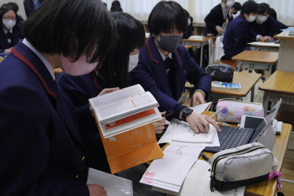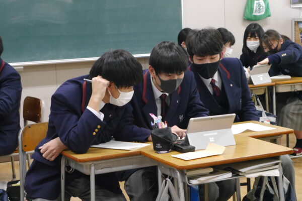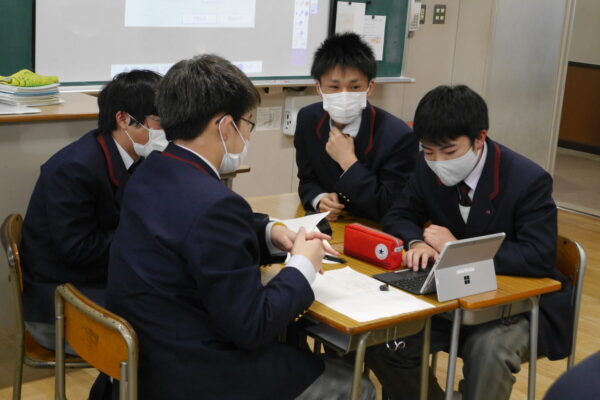 3月10日(水)16時20分から約1時間、高校1年A~D組の生徒139人が各クラス10班ずつに分かれ、「Web交歓会」を行いました。相手校は、台湾にある南光高級中学校の生徒(日本では高校2年生)です。