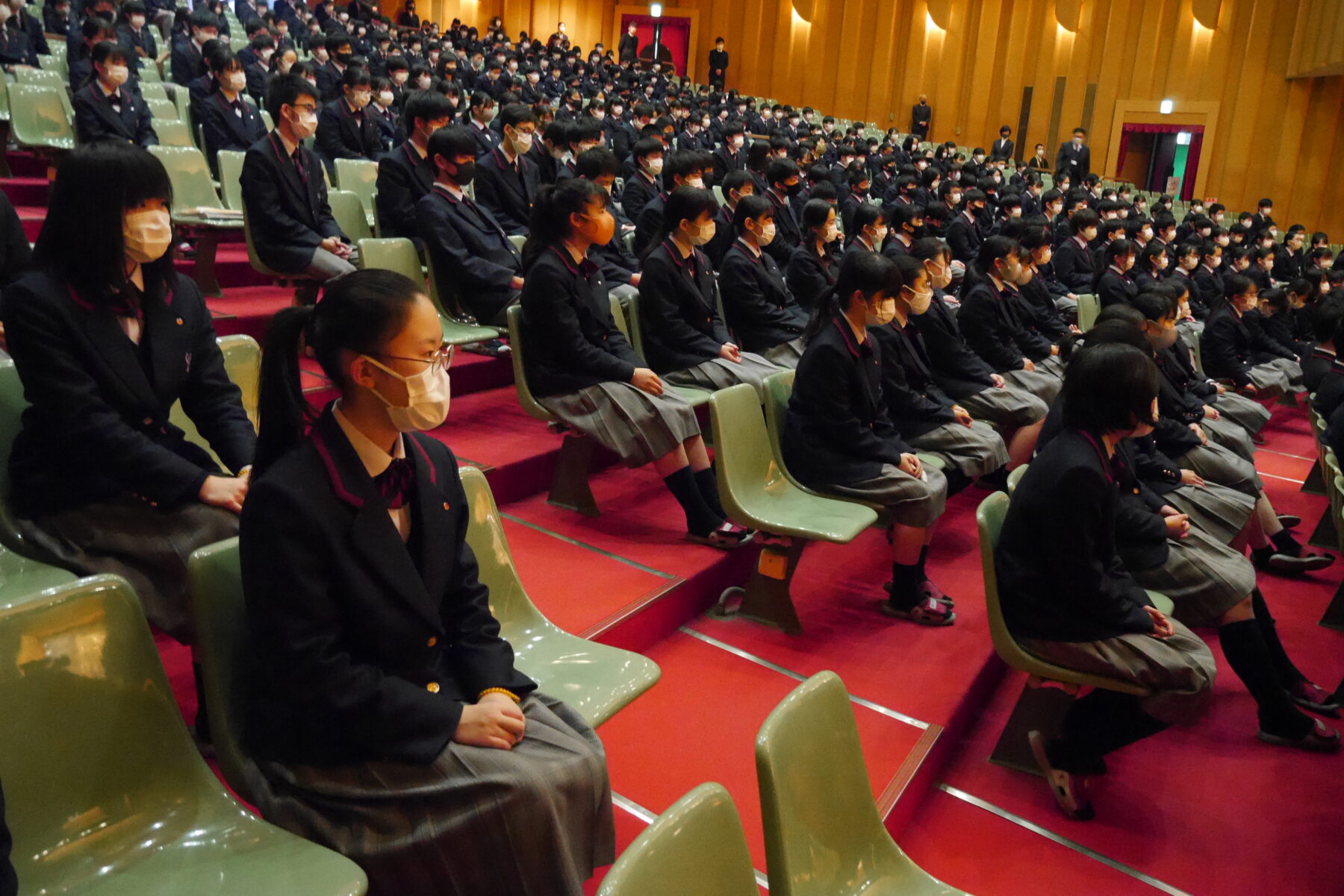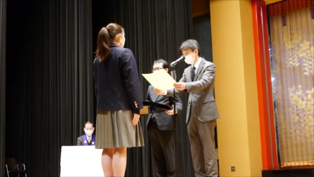 今回は、チアリーディング部が「第26回西日本チアリーディング選手権大会エキシビション部門」でAチームが「奨励賞」を受賞したことを受け、キャプテンの宮本うららさん(高校1年)が手塚校長より、賞状を受け取りました。