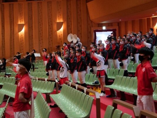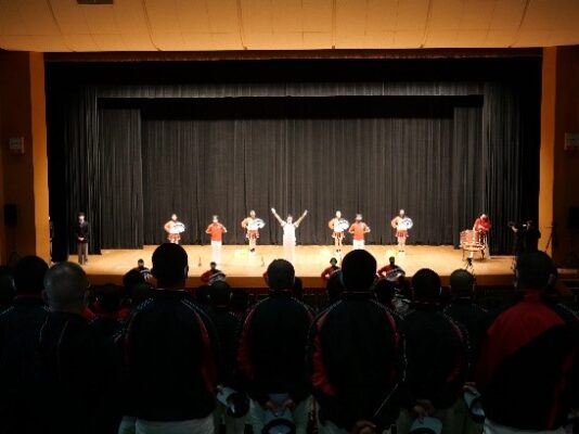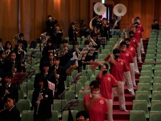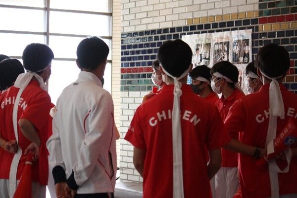 3月13日(土)に、センバツに出場する野球部への、応援団・チアリーダー・吹奏楽部・生徒会による応援壮行会を行いました。グラウンドの野球部に向けて校舎前から応援する予定でしたが、雨天のため場所を移し、講堂を目いっぱい広く使って応援しました。この壮行会の様子は、1回戦の試合中に、NHKテレビの中継で披露される予定です。ぜひご覧ください。いよいよ開幕が近づいて参りました。応援よろしくお願いいたします!
