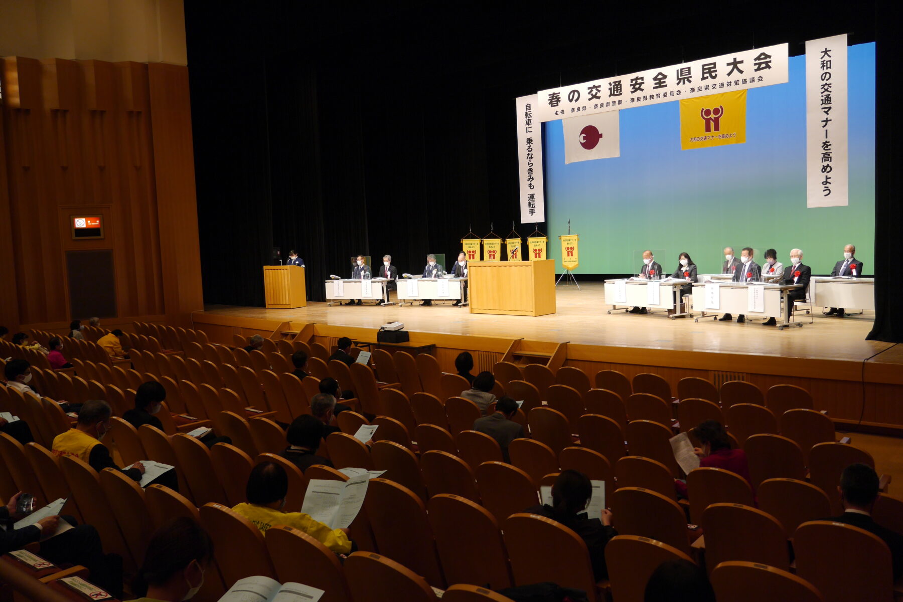 4月5日、いかるがホールにおいて、「春の交通安全県民大会」が開催され、昨年度に高校1年生が家庭科の授業で製作したも手作りの「交通安全のお守り」と目録を贈呈しました。