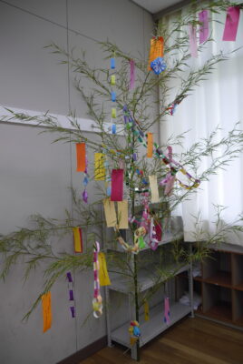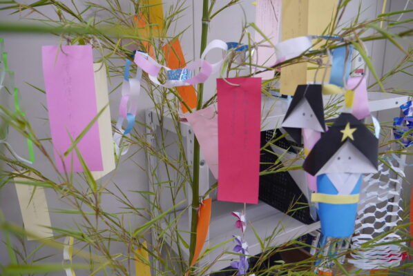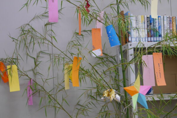「元気に一年間過ごせますように」「本をたくさん読めますように」「背が伸びますように」「学力向上!」「部活の先輩に負けないように」「推しのライブに行けますように」「全人類が幸せになれますように」などなど、短冊には、生徒たちの願いがいっぱいです。