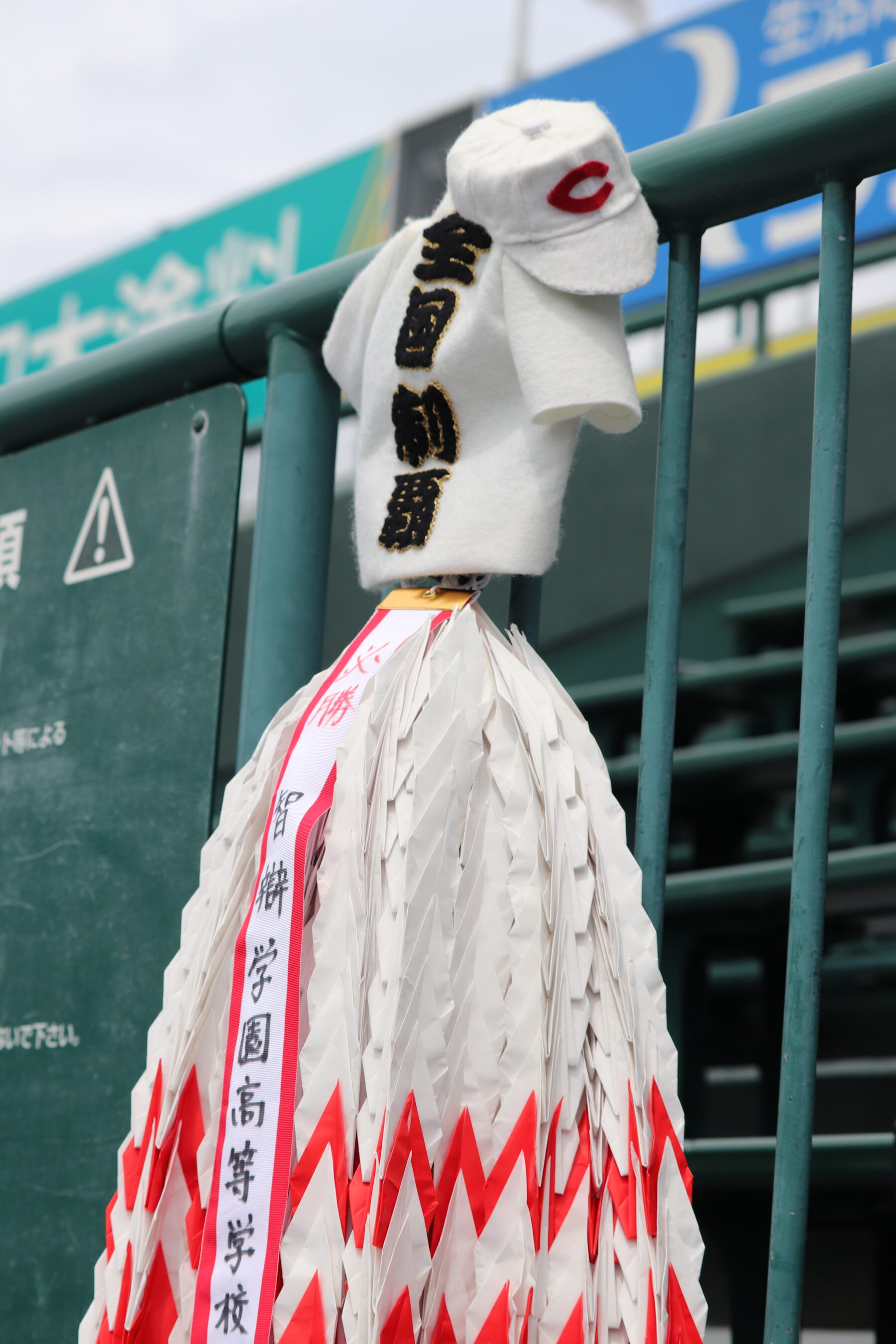 8/25の3回戦、8/26の準々決勝に勝利し、夏の大会では26年ぶりの準決勝に進むことができました。準決勝は京都国際高校との対戦になります。この3回戦から、吹奏楽部の録音音源に、今大会用に用意したチャンステーマ(「七番」)が加わりました。家で応援する全校生徒の気持ちを乗せて、球場で流れます。グラウンドの選手たちに届きますように。