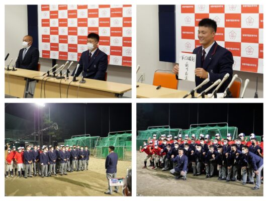 また、卒業生の松本竜也選手(Honda鈴鹿)が広島カープに5位で、福元悠真選手(大阪商業大)が中日ドラゴンズに6位で指名を受けました。あわせて本校卒業生への応援をよろしくお願い申し上げます。