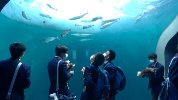 四方を海に囲まれた四国の豊かな海の再現を目指した、四国水族館の展示を自由に見学し、最後にクラスごとに記念撮影を行いました。