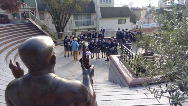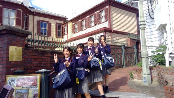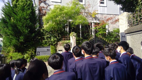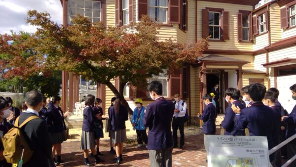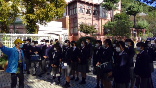 午前の北野異人館街の探索では、ガイドさんに建物やその歴史について解説していただきました。その後、お土産購入の自由時間をとりました。