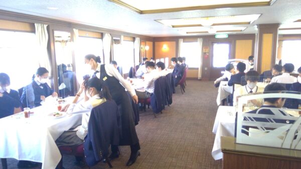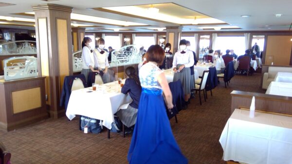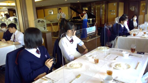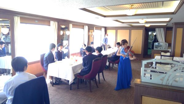 本日の昼食はルミナス神戸でのランチクルーズでした。昼食が進んだところで音楽ライブが始まり、『食』と『音』と『景色』を楽しみました。