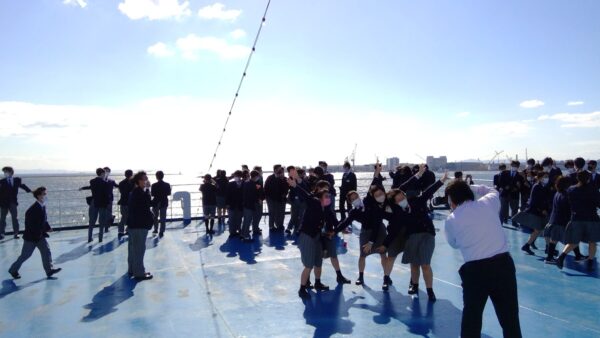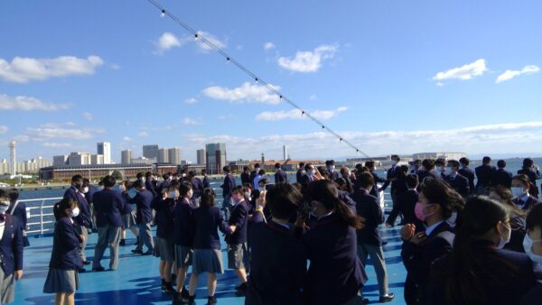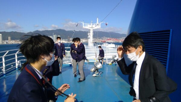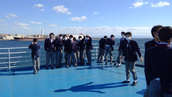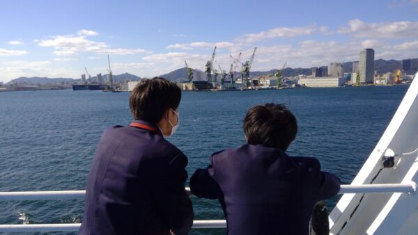 食後は船のデッキへとあがり、強い風を受けながら海と街の景色と撮影を楽しみました。