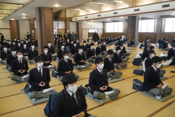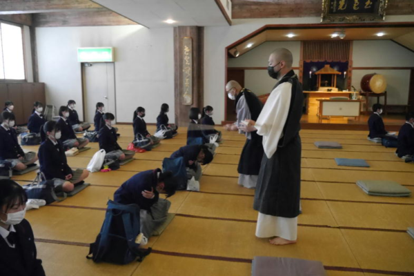 宇治に着き、青少年文化研修道場にて座禅体験です。