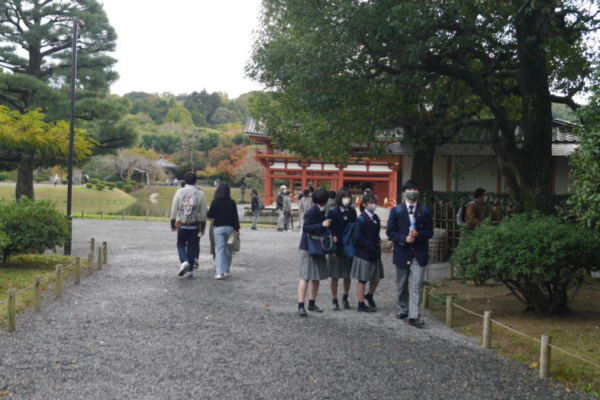空模様もなんとか落ち着きを見せ、平等院鳳凰堂をスタート地点として1時間弱の散策タイムです。