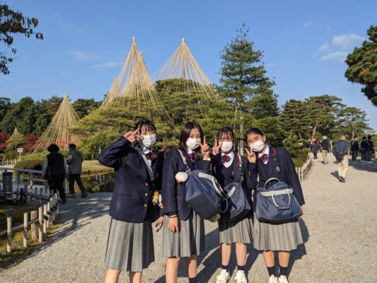 最終日は、日本の三名園の一つ「兼六園」を訪問。庭園において、優れた景観の代名詞として「六勝」という言葉があります。「宏大(こうだい)」⇔「幽邃(ゆうすい)」「人力(じんりき)」⇔「蒼古(そうこ)」「水泉(すいせん)」⇔「眺望(ちょうぼう)」これらは庭園で両立するのは難しいといわれています。 これら「六勝」を兼ね備えた様々な趣が共存するこの名園。表情豊かな景観を楽しみつつ仲間と散策しました。
