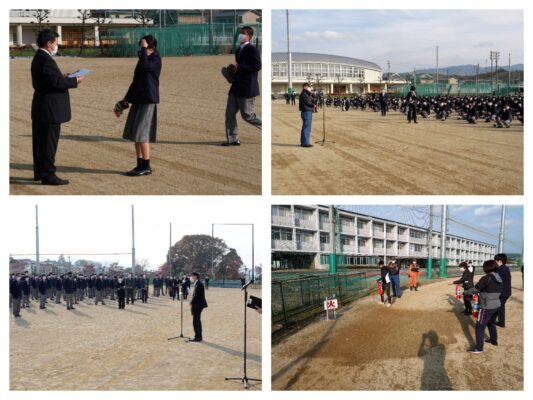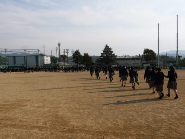 11月16日(火)に、全校防火避難訓練が行われました。近い将来に予想されている南海トラフ地震を想定した、地震の後の火災から避難する訓練です。実施後には、奈良県広域消防組合五條消防署予防課長の辻井様より、とても素早い避難行動ができたというご講評と、訓練ではない本当の災害の際に今日の経験を活かしてほしいというお話を頂きました。生徒一人ひとりが学園在学中も卒業後も、それぞれの場所で「その時」に周りの人々を守れるリーダーとなってほしいと願っています。
