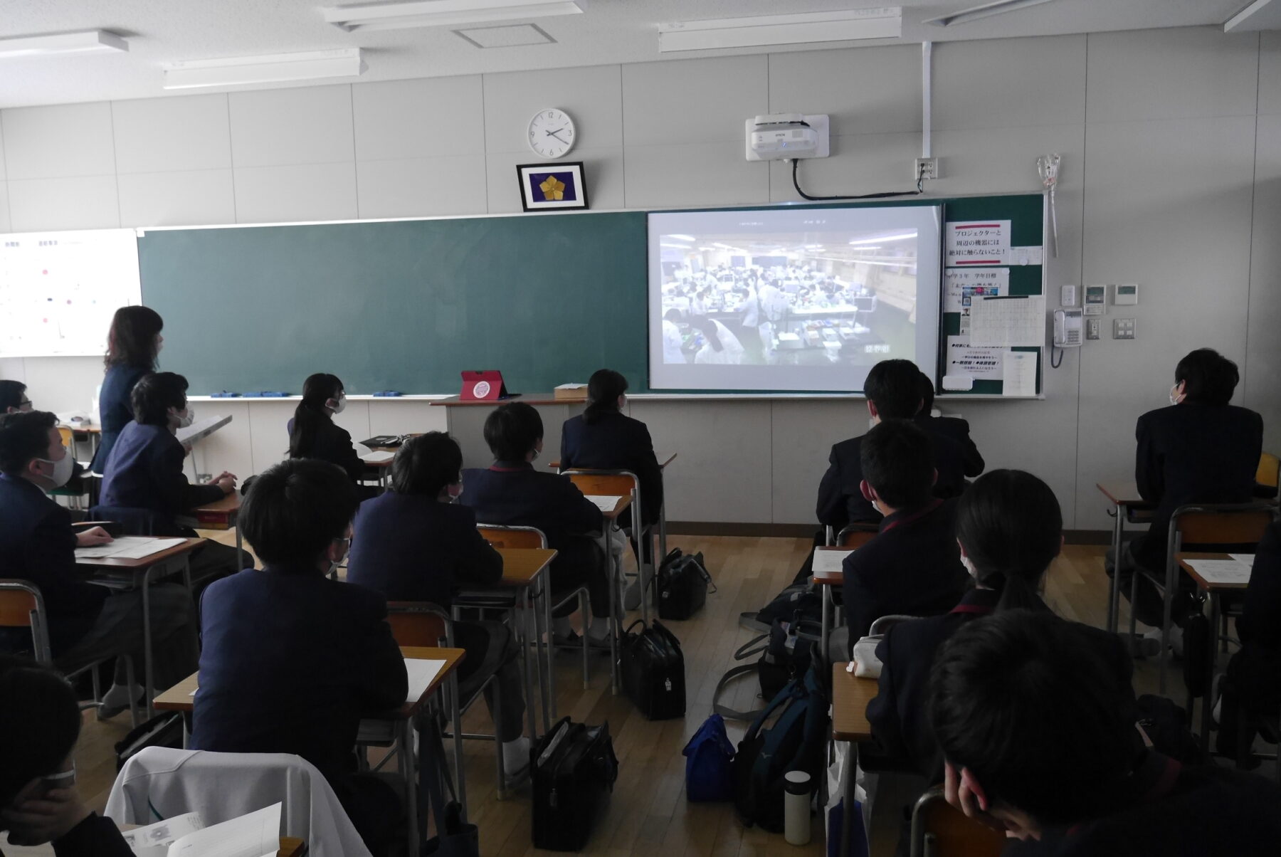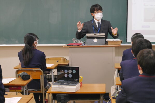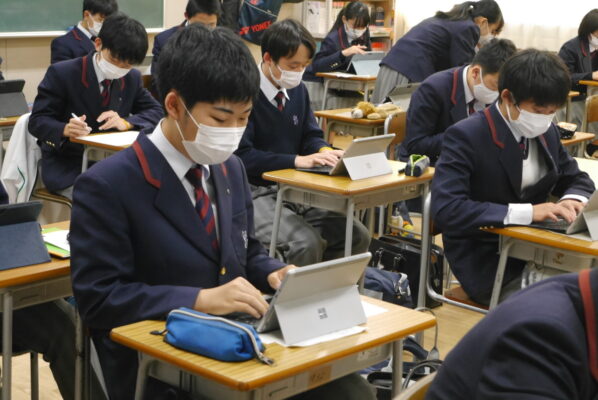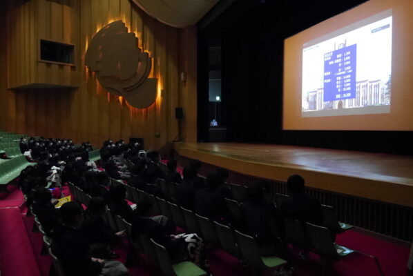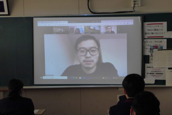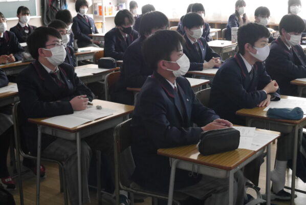中学1年から高校1年までの計303名(中学1年は一部の生徒たち)が、各クラスと講堂で参加しました。