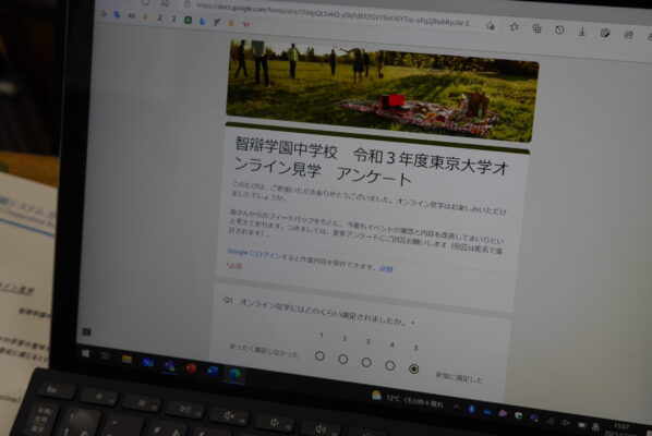 見学会後、生徒たちは感想やアンケートを入力し、見学会を振り返りました。その内容をいくつかご紹介します。「中3の僕にとって、将来のことを考えるうえで、とても良い機会になったと思います。」「テクノロジーの進化で、今まで不可能だったことが現実化していることを知り、面白かったです。」「ロボットと生物や科学とアートなど、今まで別のものだと思っていたものが融合する、たいへん興味深かったです。」