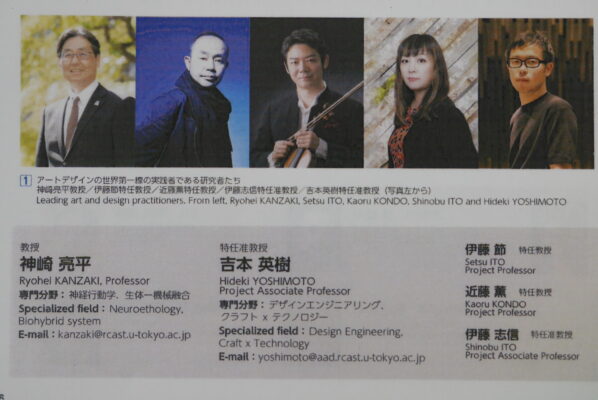 ①先端研および「科学技術とアート」研究(神崎教授) ②「科学とアート、デザイン」研究(吉本英樹特任准教授・智辯和歌山OB) ③「匂い源探索ロボット」(大学院生) ④「AR,VR、ロボット」(大学院生)