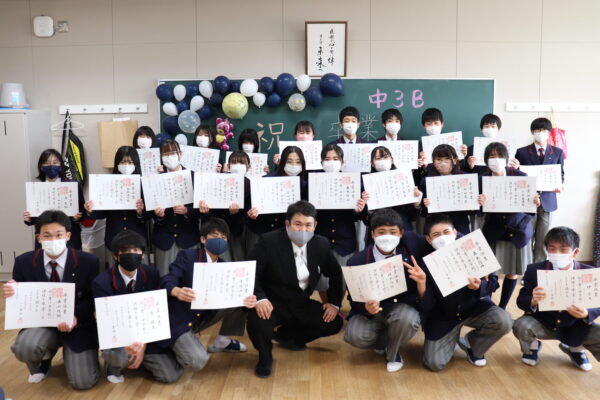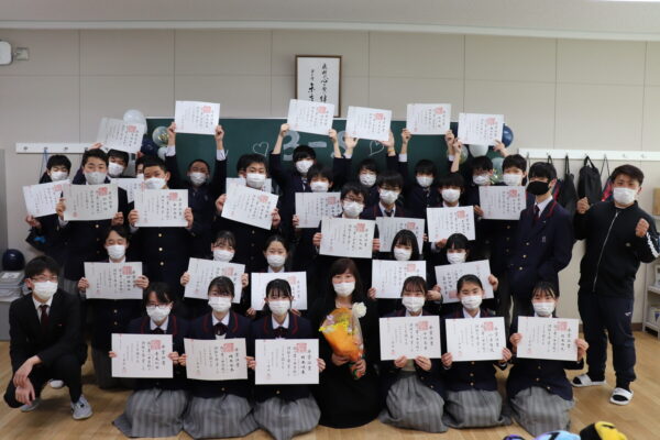 4月から高校生として、自己の夢に向かって一人ひとりが充実した生活を送ってくれることを願っています。