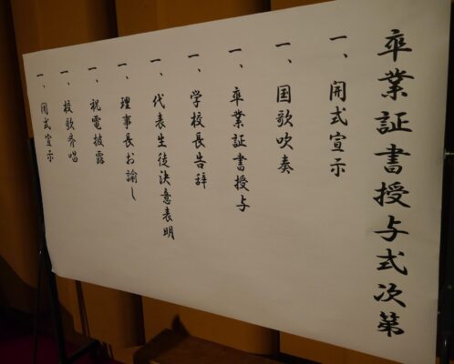 藤田清司理事長先生からは祝福の言葉の後、卒業生全員が書いた『十年後の私』の中のひとつを読み上げられ、生徒に向けてのお諭しがありました。
