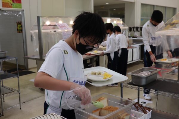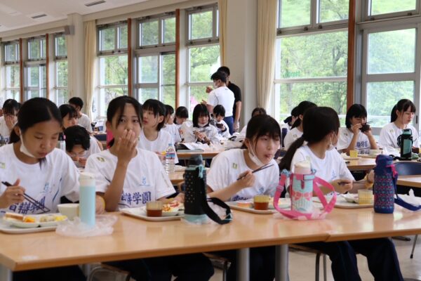 お昼ごはん。バイキング形式の食事は、林間学校の大きな楽しみです。