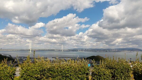 明石海峡大橋を抜け淡路島へ。淡路サービスエリアで休憩後、大鳴門橋を渡り、昼食会場となる鳴門グランドホテル海月に到着します。