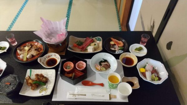 夕食もボリュームたっぷり。修学旅行一日目の夜が更けていきます…