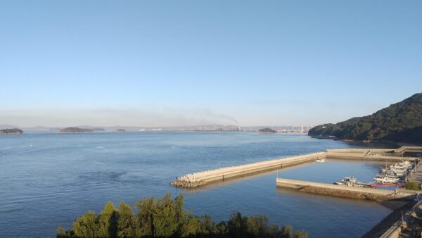 修学旅行は3日目に入ります。ホテルからの風景です。瀬戸内は青空の爽やかな朝でした。
