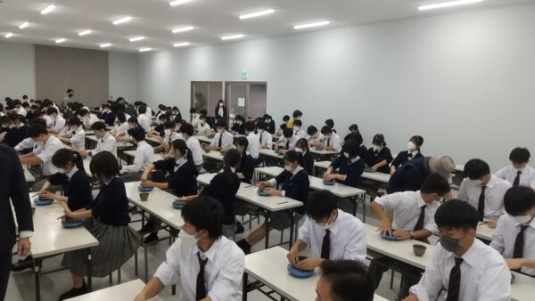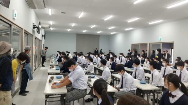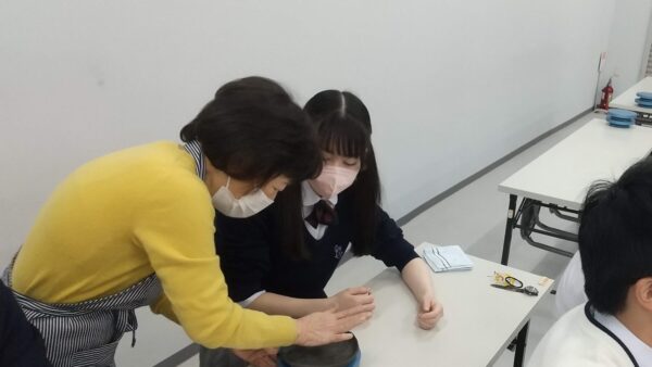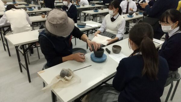 インストラクターの方に様々なアドバイスを受け、コップや皿、茶わんなど、世界に一つだけの作品の制作を進めていきます。完成品は後日学校に届くそうで、出来上がりが楽しみです。
