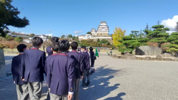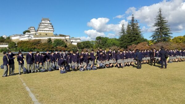 岡山プラザホテルで昼食をいただき、一行は国宝姫路城へ。