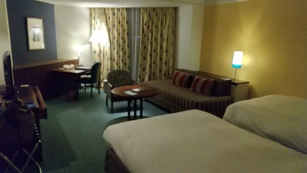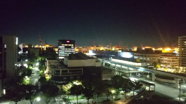 城からは姫路の町が一望できます。日も傾いてきました。さらにバスに乗り、神戸へ。本日泊まるのはポートピアホテル神戸です。