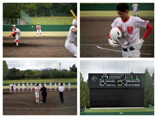 9月19日より秋季近畿地区高等学校軟式野球大会奈良県予選が開催されました。本校軟式野球部は、1回戦は2対0で勝利、2回戦は10対2(7回コールド)で勝利し、10月9日に近畿大会代表校をかけ決勝戦に臨みました。決勝戦は学校関係者、保護者の皆様や同級生など多くの方々に応援して頂きましたが、天理高校に0対2で惜敗し、念願の近畿大会出場とはなりませんでした。高校軟式野球部創設5年目にして最も夢に近づけた試合でしたが、部員たちが堂々と自信を持って挑戦する姿を多くの人に伝えられたことを、嬉しく思います。