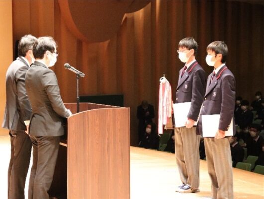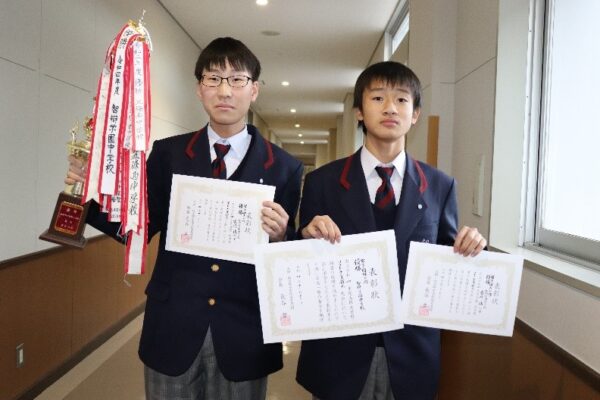 11月12日に五條市上野公園で、令和4年度五條・内吉野中学校ソフトテニス新人大会が行われ、男子4ペア、女子3ペアが参加しました。男子団体の部では優勝を勝取ることができました。また、男子個人の部では宮﨑・俵ペアが優勝しました。2年生を中心に、新しく入ってきた1年生をまとめ上げ、昨年度より大幅に成長した姿を見せてくれました。なお、12月14日に行われた感謝祭で、校長先生から表彰を受けました。
