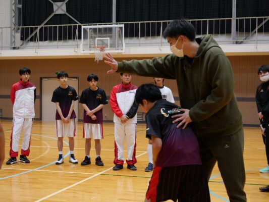 また、その試合に出場していた三森啓右選手が翌日12月19日に来校され、ドリブルやパスなどのファンダメンタルから1対1の仕方まで多くのことを教えていただきました。三森啓右選手とバンビシャス奈良のスタッフの皆様、寒い中貴重な経験をありがとうございました!!この経験を生かし、次の公式戦に向けてモチベーション高く練習に励んで参ります。今後とも熱い応援のほどよろしくお願いします。