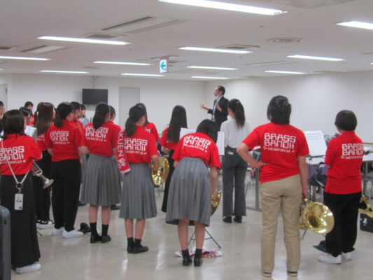 野球応援メドレーではオリックスバファローズへの声援を届け、またこの日入団会見を行った本校卒業生の廣岡大志選手にもエールを送らせてもらいました。
