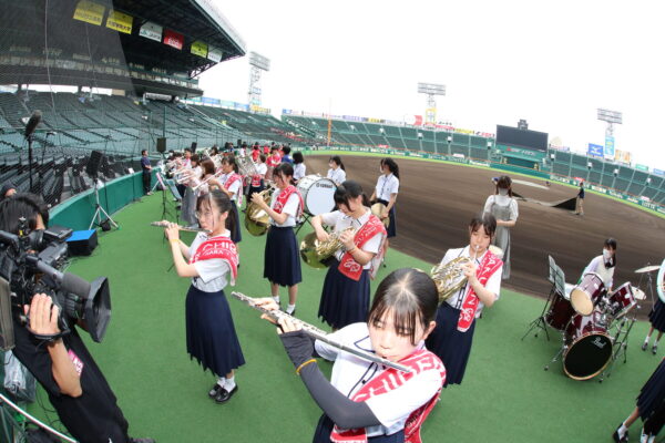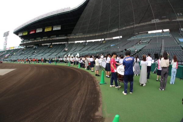 阪神甲子園球場100周年の記念事業の一つとして開催されましたこのイベントは、高校野球の応援にゆかりのある全8校が参加し、応援曲のメドレーや合同演奏を披露しました。本校は定番となっているアフリカンシンフォニーや三番、ジョックロックなどを、多くの観客が入る中披露させていただきました。普段はアルプススタンドでのパフォーマンスですが、今回はグラウンドまでおりてのパフォーマンスができ、とても新鮮な気持ちで楽しませていただきました。当日は「バーチャル甲子園」での配信がありましたが、アーカイブ配信も行っております(2023年6月20日現在)。よろしければご覧ください。