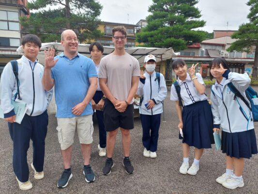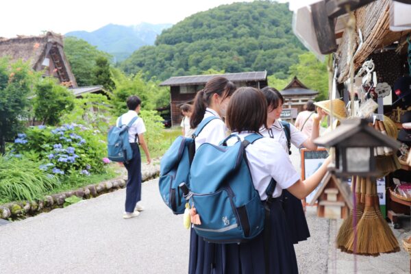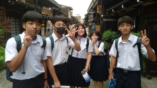 高山市内散策では、国史跡に指定されている「陣屋」を見学し、その後、生徒たちが自らの興味関心に応じて設定したテーマに沿って、市内を巡りました。また、たくさんの海外からの観光客がいらしたことから、学校の授業で学んだ英会話力がどれくらい通じるのか、積極的に話かける生徒もいました。