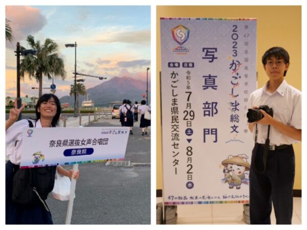 7月29日から開催された第47回全国高等学校総合文化祭鹿児島大会(かごしま総文2023)に、本校写真新聞部の竹村遥琉さんとコーラス部の小山愛優美さんが、奈良県代表生徒として参加してきました。