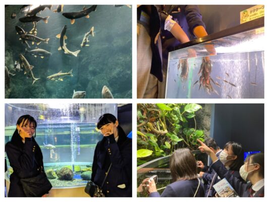 初日はサケのふるさと、千歳水族館を訪問。淡水魚の水族館では日本最大級規模の大水槽や、サケの一生を分かりやすく紹介する「サーモンムービー」、水中を直接覗ける世界初の「水中観察室」などがあり、サケと北方圏の淡水魚の生態を楽しく学ぶことができました。またすぐ側にある千歳川では、サケの遡上を見ることができました。