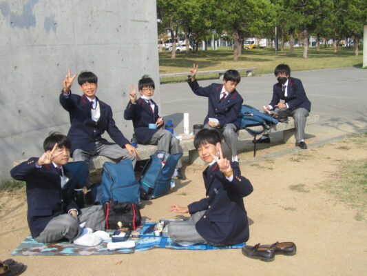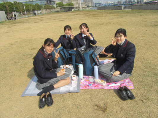 近くのなぎさ公園で昼食をとり、記念写真を撮影しました。