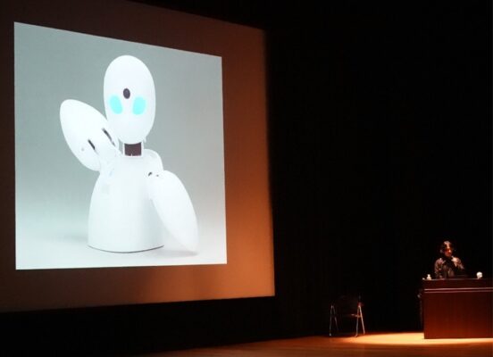 講演では、「分身ロボット OriHime」に関する開発のきっかけからその役割、活動の様子について、わかりやすく、また興味深くお話をして下さいました。