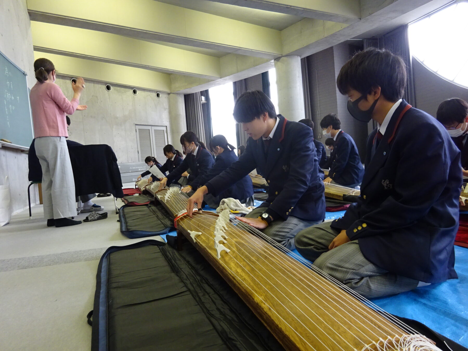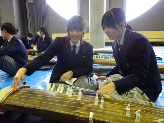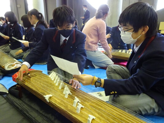 中学3年生は音楽の授業で、お琴で「さくら」を演奏しました。