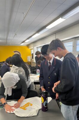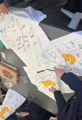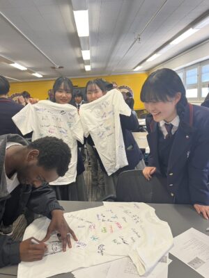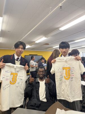 留学担当のKyler Jackson先生からは、トーマスジェファーソン高校のTシャツをプレゼントしていただきました。思い出としてクラスメイトからTシャツにサインをいただき、嬉しそうな様子でした。