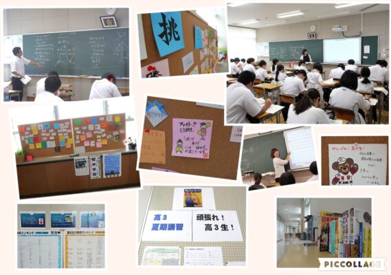 いよいよ本日、甲子園の緒戦です。昨日と今日の本校の日常風景をみなさんに紹介します。昨日は、応援団の最後の練習日でした。チアリーダーの練習の様子です。甲子園が決まってからはいつもこの階段で練習します。学園のシンボルの木の下で、最後に円陣で気合いを入れました。そして、甲子園は中学高校の全校応援ですが、高校3年生は学園で昨日も今日も夏期講習を頑張っています。全国の頂点を目指す気持ちは一緒です。
