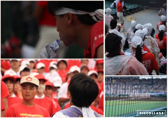 8月19日(月)に、準々決勝にて京都国際高校と対戦しました。今大会初の曇天から試合途中には雨も降りだす空模様の下、中盤からは苦しい試合展開となりました。グラウンドの選手もスタンドの応援団も総力戦。力を尽くしましたが0―4で敗れ、本校の甲子園の幕切れとなりました。今大会のみならず、いつもずっと本校と硬式野球部を支え、声援を送って下さった全ての皆さま方に、学園一同深く感謝いたします。ありがとうございました。またこれからも本校の生徒たちを応援してくださいますようお願い申し上げます。
