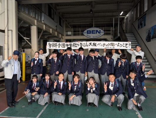 中学3年生では、「仕事について知る」ということをテーマに、働くとはどういうことかを考え、職業観・勤労観を進路HRや調べ学習を通して深める取り組みを行っています。最先端のモノづくりの現場を肌で感じ、働くことへの関心や意欲を高めてほしいという思いから、校外学習の一環として「モノづくりのまち」東大阪を訪れました。