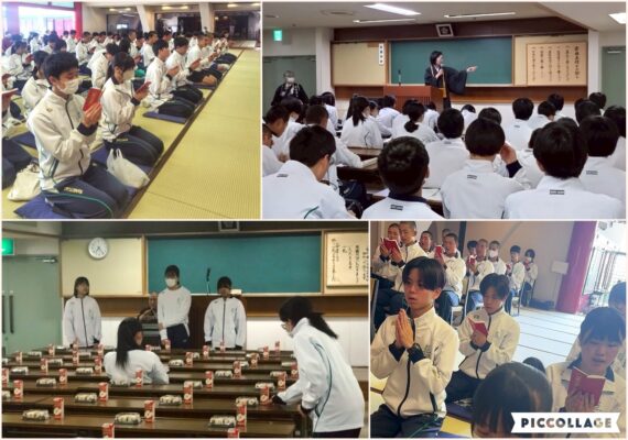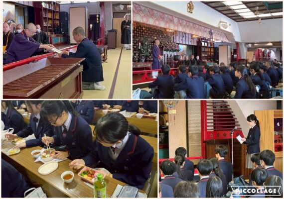 4/24(木)と25(金)の二日間、高校1年生は大阪府茨木市の辯天宗冥應寺にて、練成会に参加しました。普段の学園生活とは少し違う行(ぎょう)の中で、日常の大切さや感謝のこころを考えてほしい行事です。