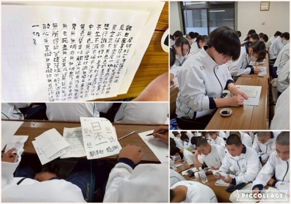 写経。慣れない小筆で、自分のペースで一文字ずつ丁寧に。最後に自分の願いを合わせて書きます。夜は自習の時間があります。