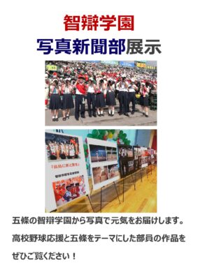 6月22日(日)に五條市シダーアリーナで行われる「五條フェスティバル2025」で、本校写真新聞部の作品を展示させてもらいます。高校野球応援をテーマにした過去三年の作品と、地元五條の地域をテーマにした写真甲子園応募作品です。ぜひご来場ご観覧ください。